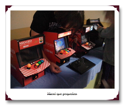 Bromas aparte, la gente era muy enrollada, colaboradores y organizadores un diez para ellos (no pongo nombres porque seguro que me dejo alguno), el local era espacioso y con diversas salas para cada cosa, en una de ellas encontré las famosas mini árcade creadas por @SpArcade, una pasada vamos.